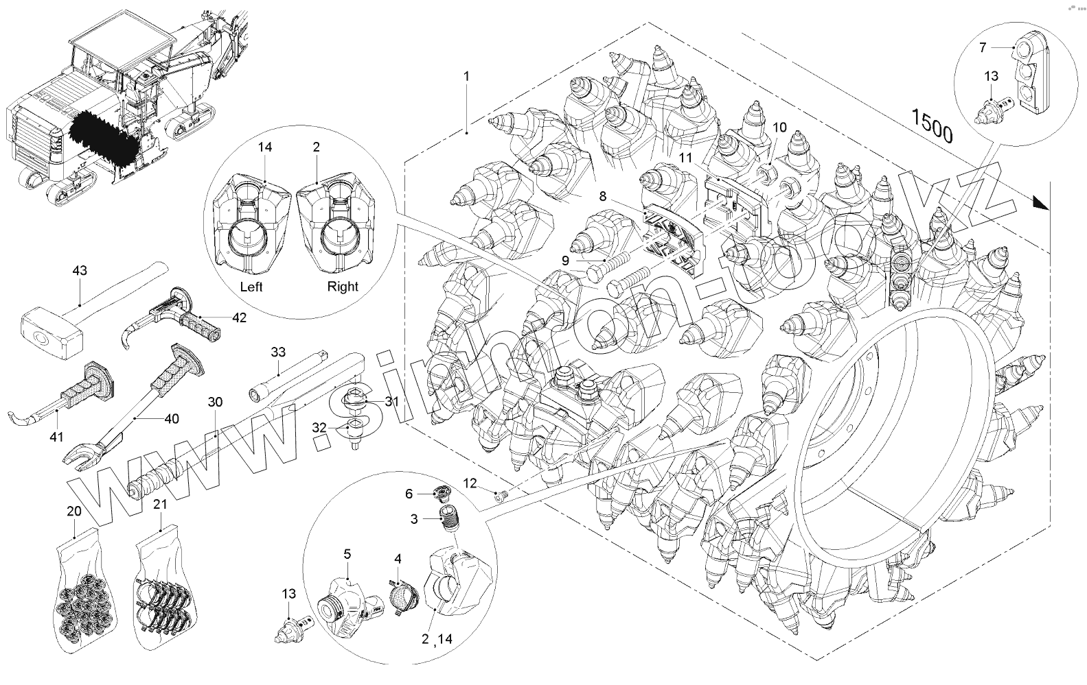 Каталог запасных частей к технике: WIRTGEN W200. DRUM FB1500 HT22 LA15