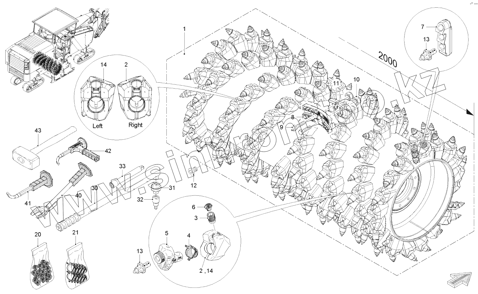 Каталог запасных частей к технике: WIRTGEN W200. FCS-DRUM FB2000 HT22 LA18