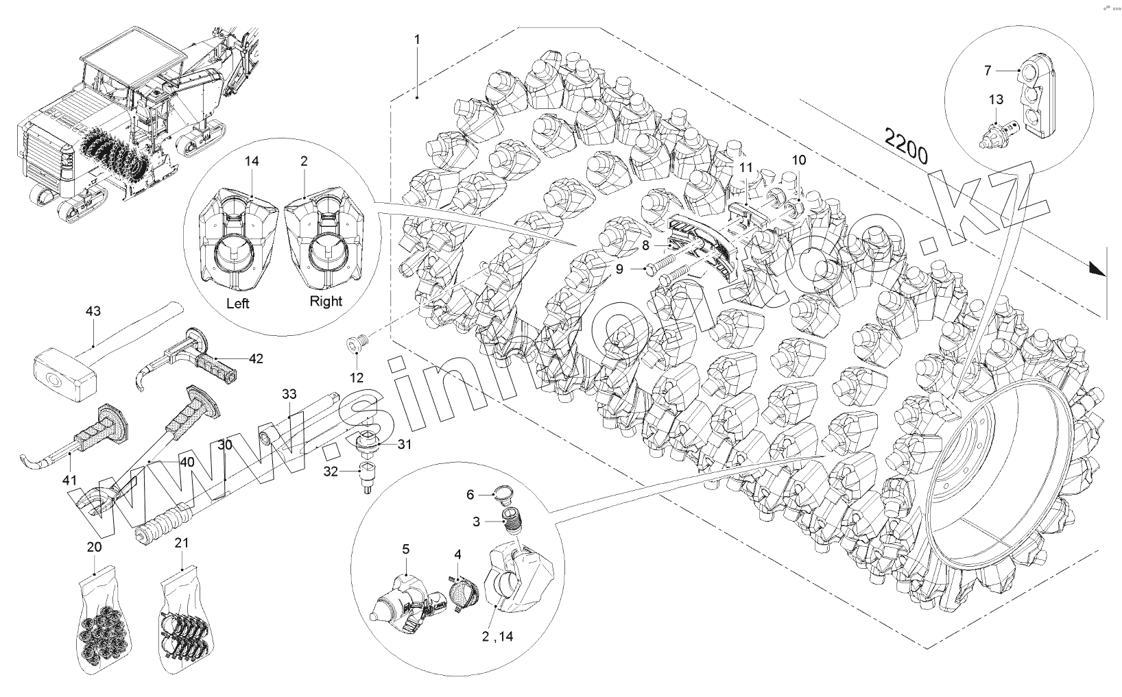 Каталог запасных частей к технике: WIRTGEN W200. FCS-DRUM FB2200 HT22 LA15 PKD