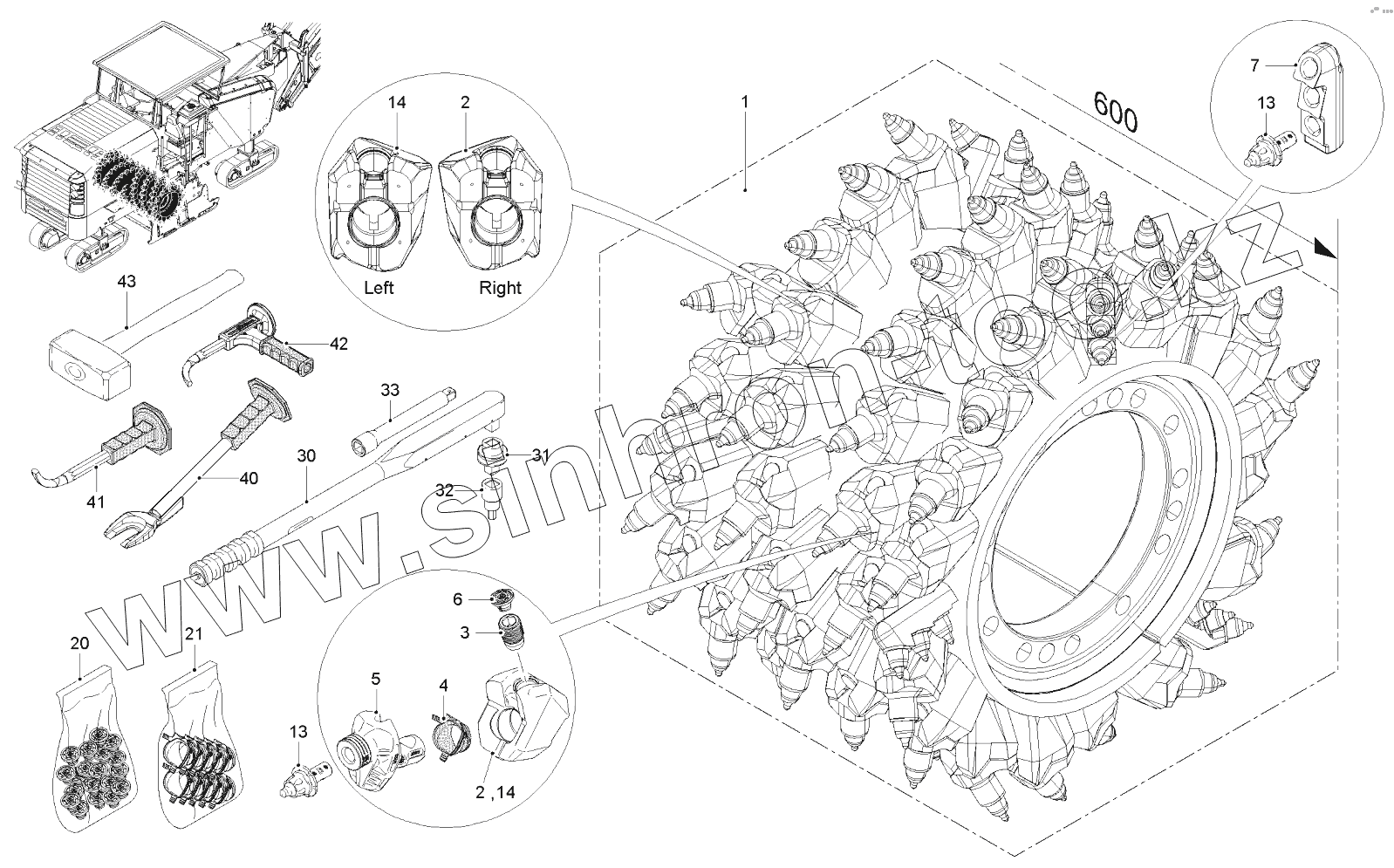 Каталог запасных частей к технике: WIRTGEN W200. FCS-DRUM FB600 HT22 LA15