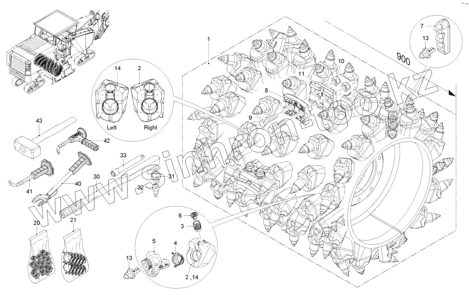 Каталог запасных частей к технике: WIRTGEN W200. FCS-DRUM FB900 HT22 LA15