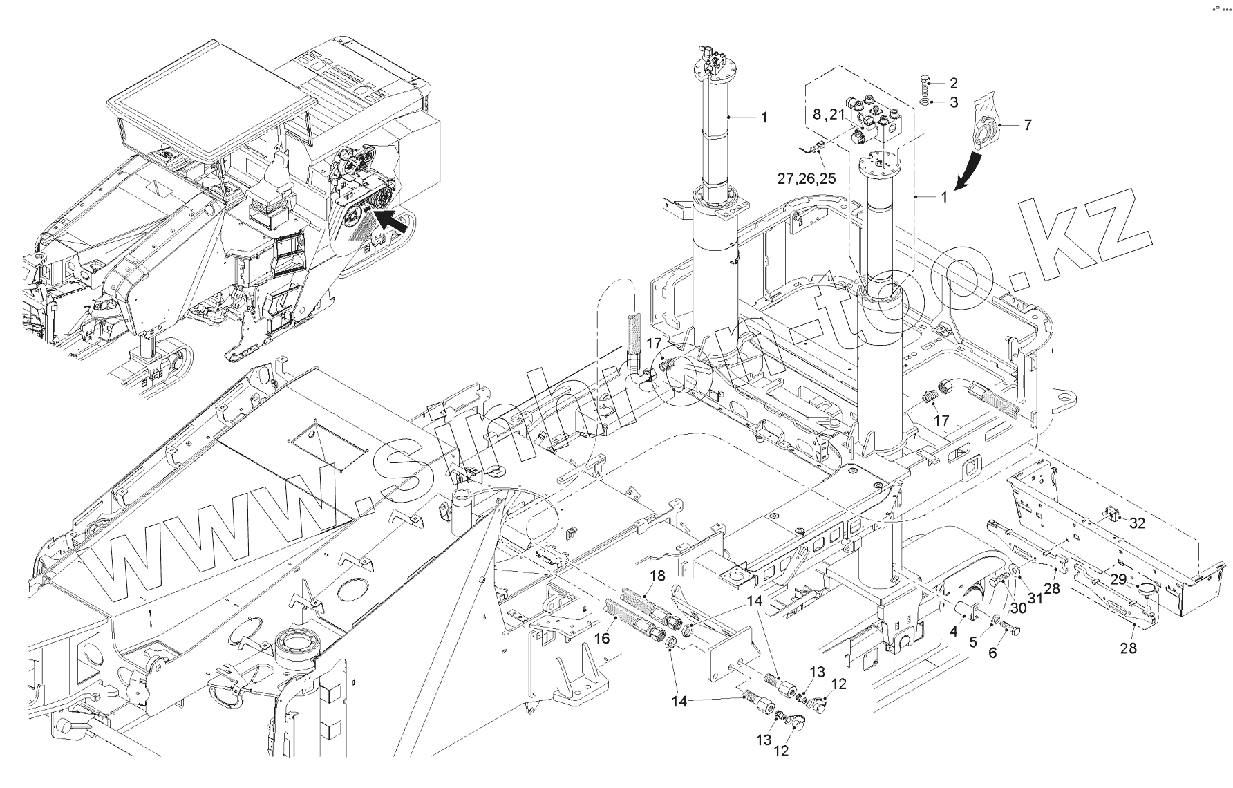 Каталог запасных частей к технике: WIRTGEN W200. HEIGHT ADJUST.-CRAWLER REAR