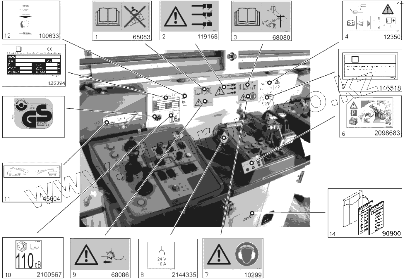 Каталог запасных частей к технике: WIRTGEN W200. STICKERS OPERATOR'S STAND I