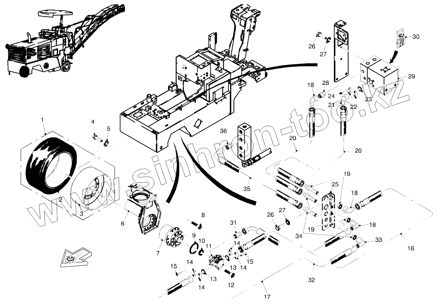 Каталог запасных частей к технике: WIRTGEN W600DC. ADVANCE DRIVE FRONT 3-WHEEL