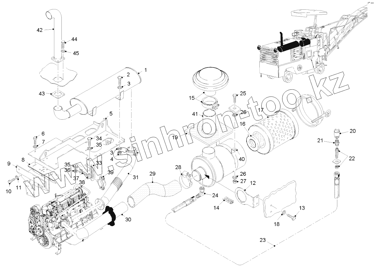 Каталог запасных частей к технике: WIRTGEN W600DC. AIR INTAKE / EXHAUST SILENCER