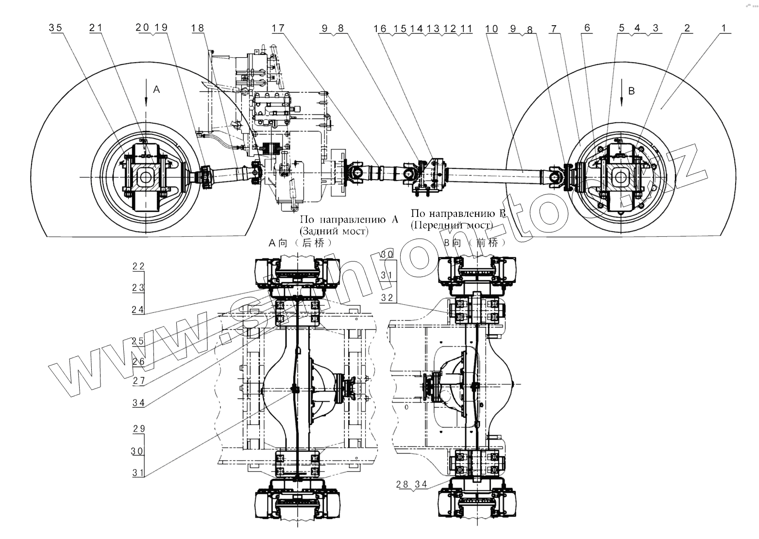 Каталог запасных частей к технике: XCMG 500KN, 500KSN. Монтаж ведущего моста и передаточного вала LW500KN
