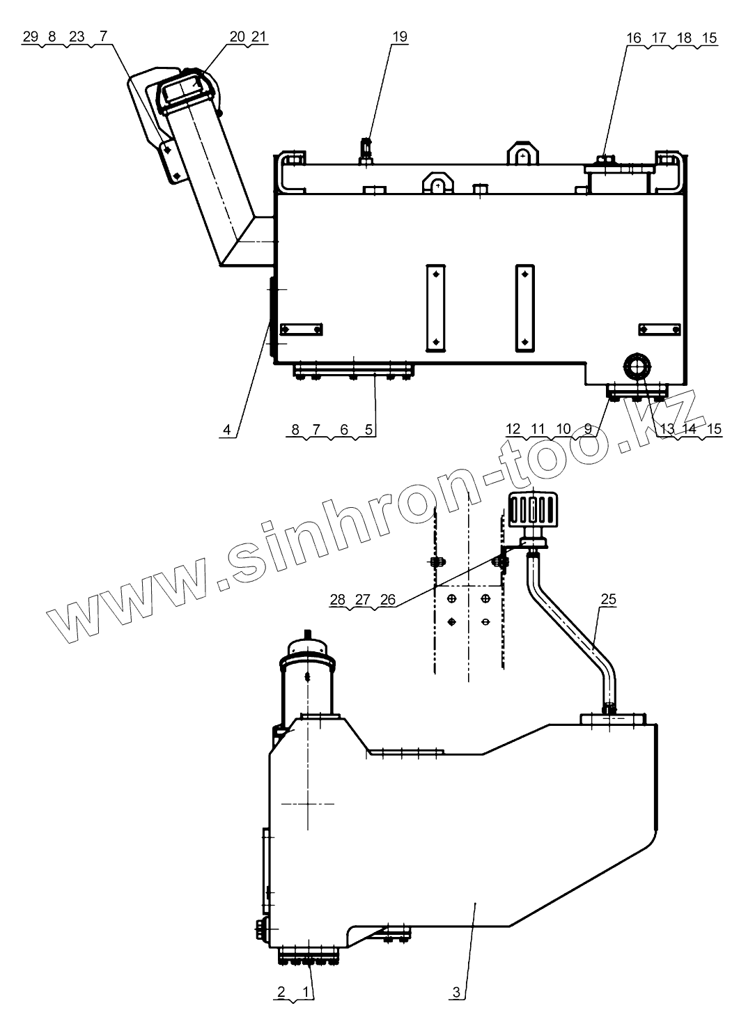 Каталог запасных частей к технике: XCMG 500KN, 500KSN. Топливный бак в сборе LW500KN