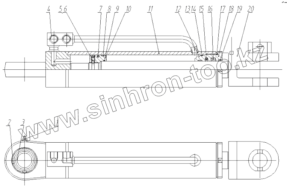 Каталог запасных частей к технике: XCMG Автогрейдер-GR135. 380900703 Right Blade Angle Change Cylinder
