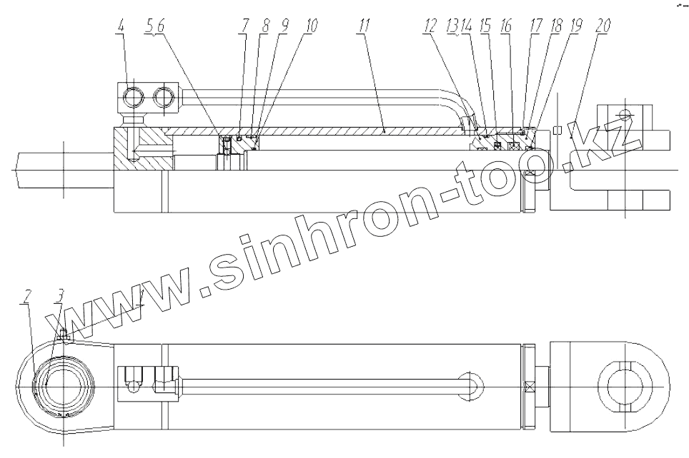 Каталог запасных частей к технике: XCMG Автогрейдер-GR135. 801030964 Left Blade Angle Change Cylinder