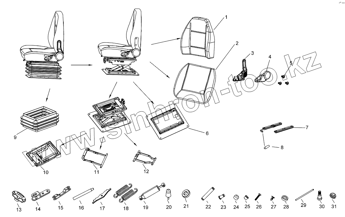 Каталог запасных частей к технике: XCMG LW300KN. Сиденье в сборе 801968889 LW300KN