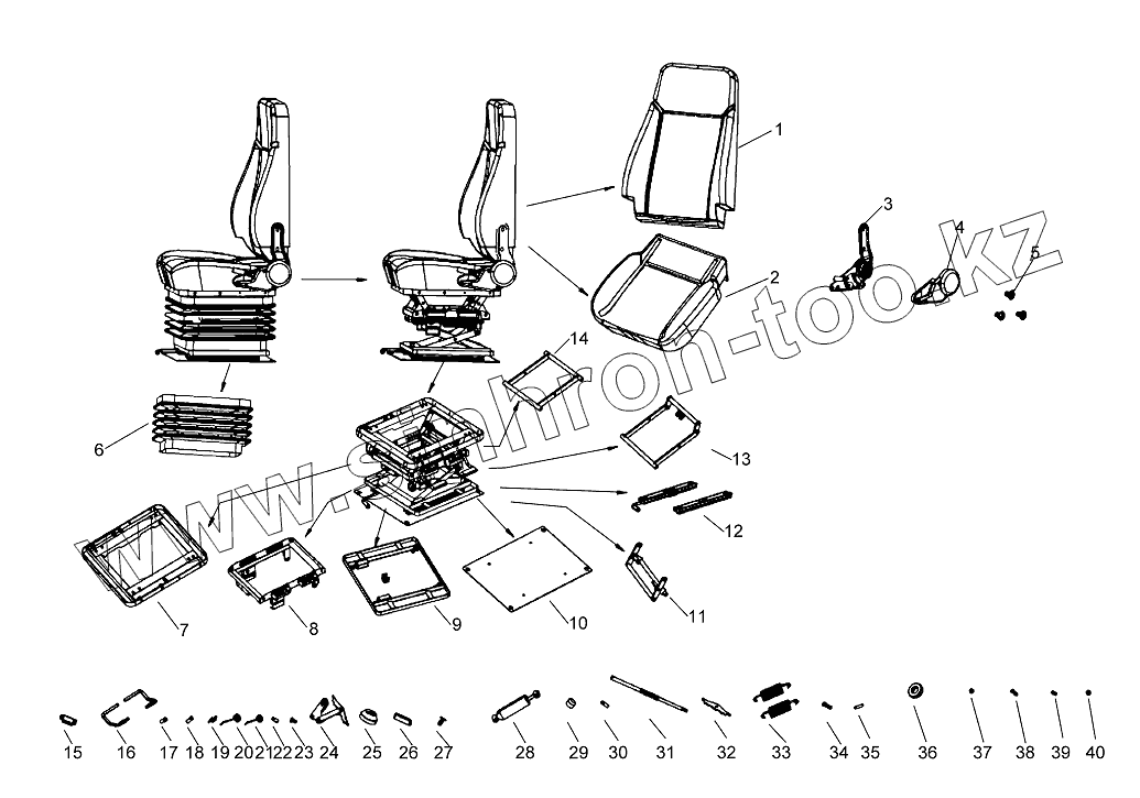 Каталог запасных частей к технике: XCMG LW300KN. Сиденье в сборе 801968890 XGZY03-AII