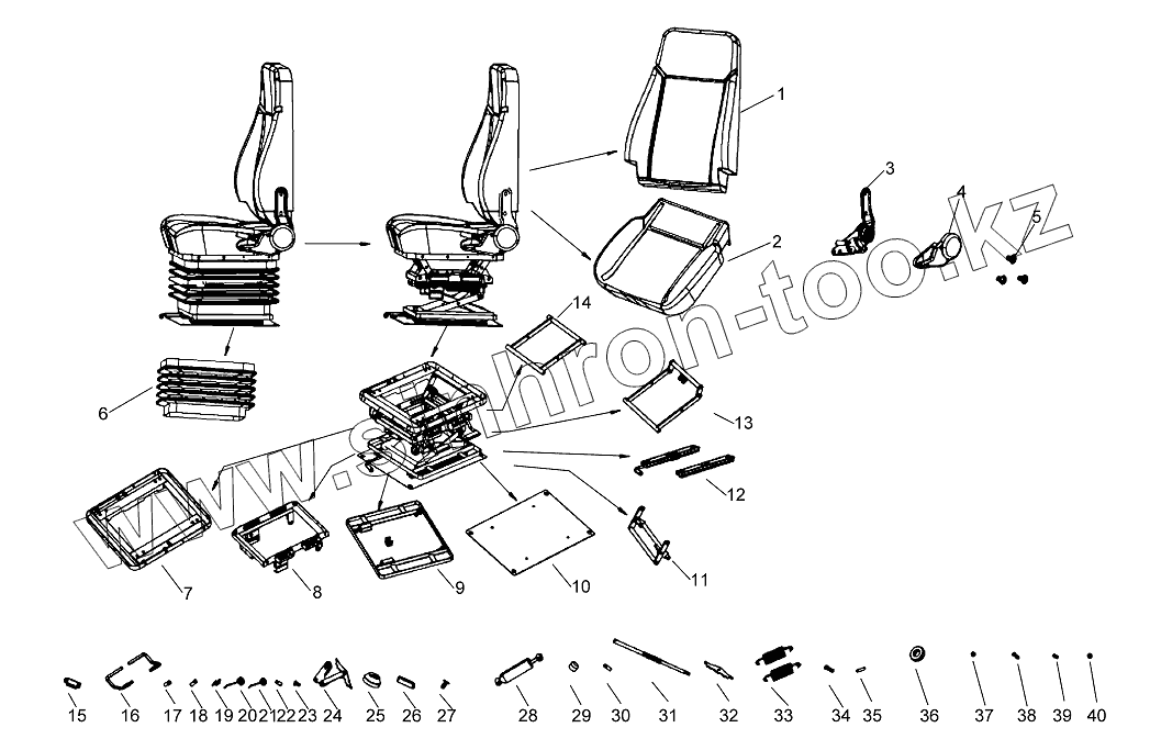 Каталог запасных частей к технике: XCMG LW300KN. Сиденье в сборе XGZY03-AII
