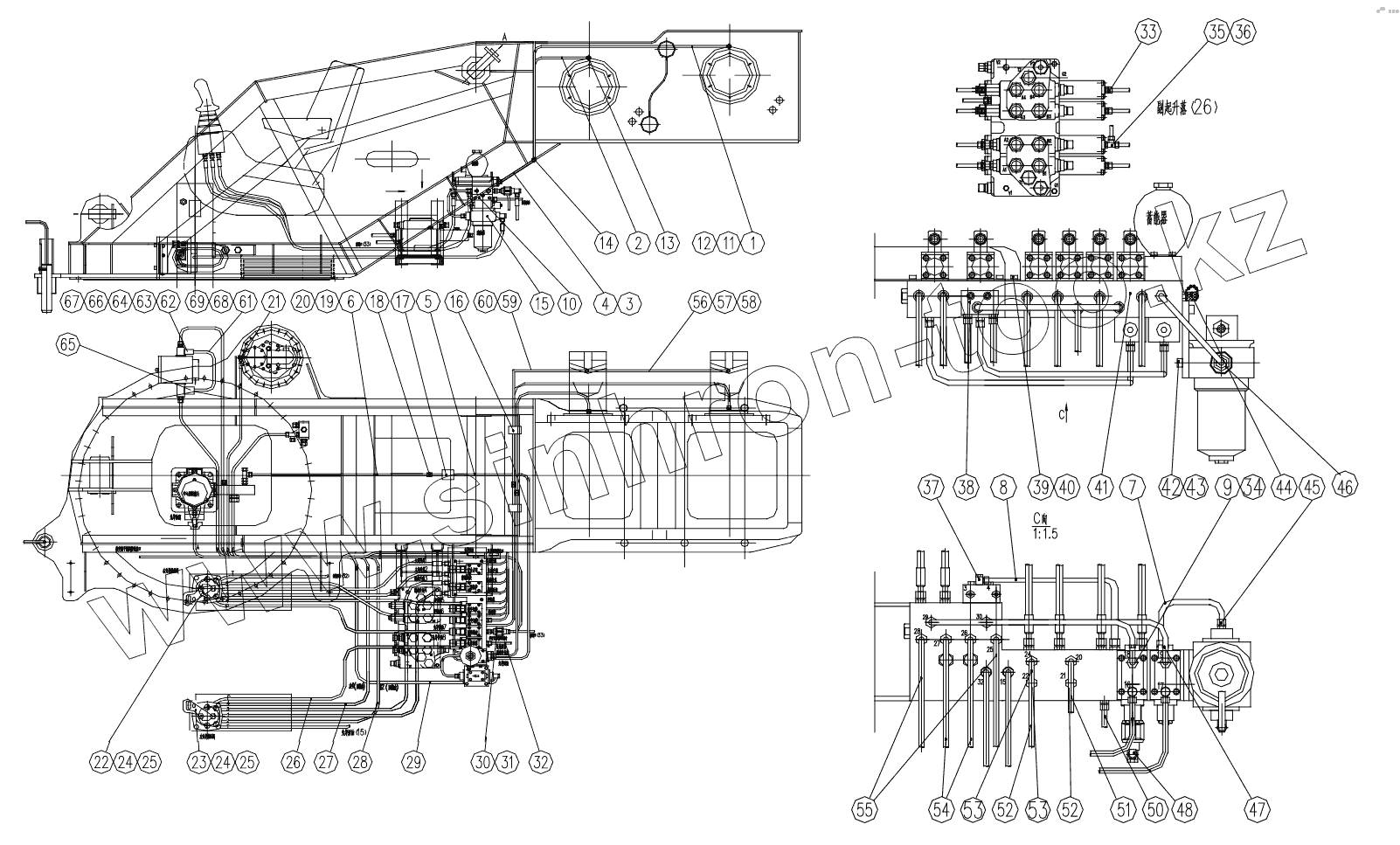 Каталог запасных частей к технике: XCMG QY25K5-I. 111201534 Guide control's Piping Plan