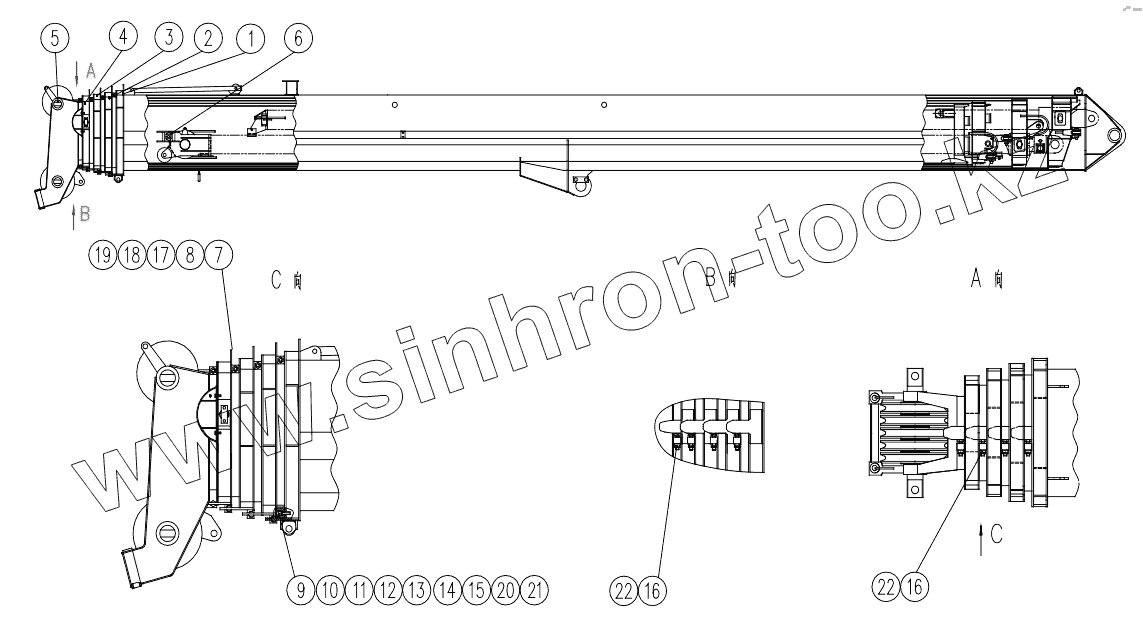 Каталог запасных частей к технике: XCMG QY25K5-I. 111202229 Boom