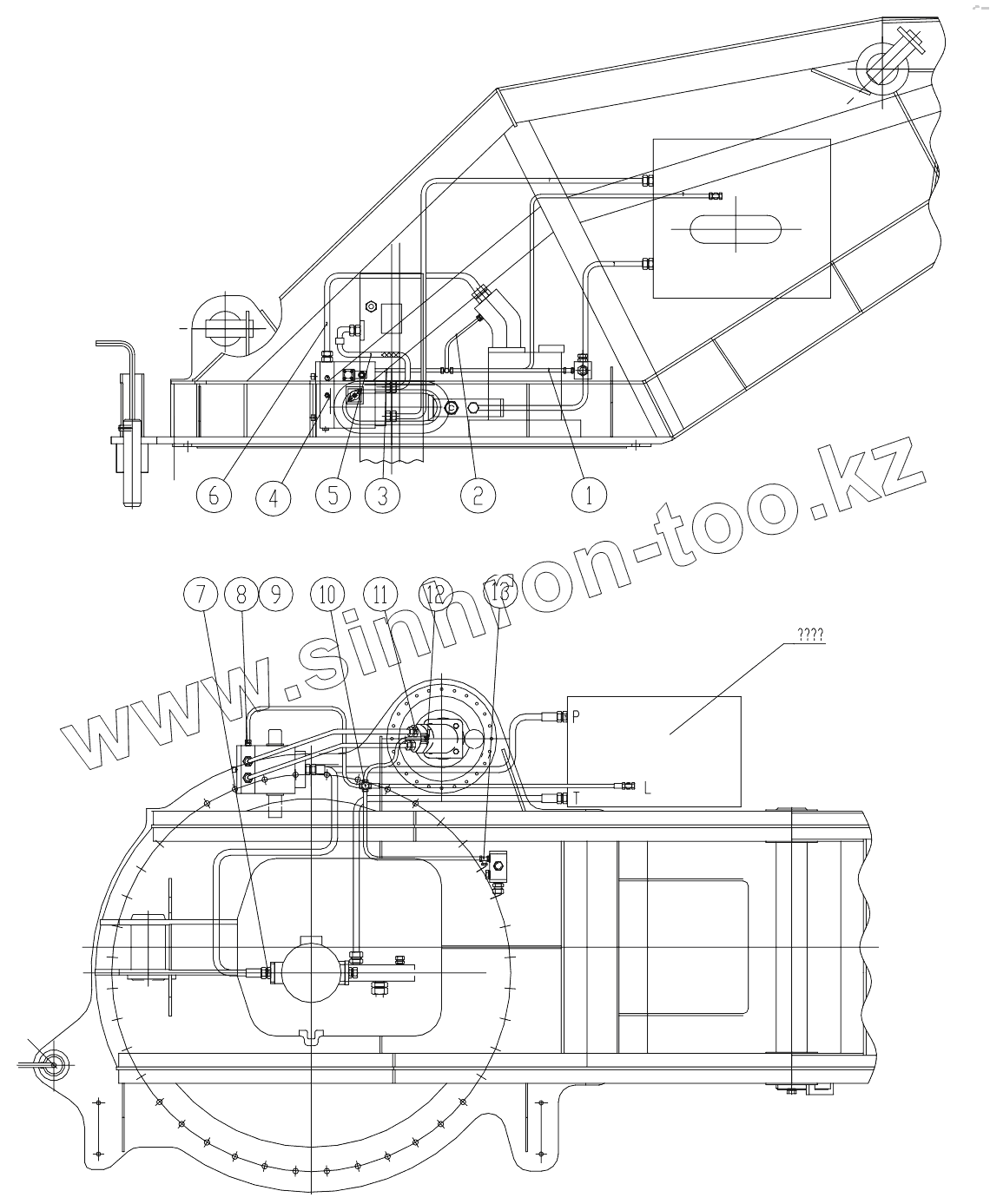 Каталог запасных частей к технике: XCMG QY30KL. 111201543 The turn round's assembly pipe route