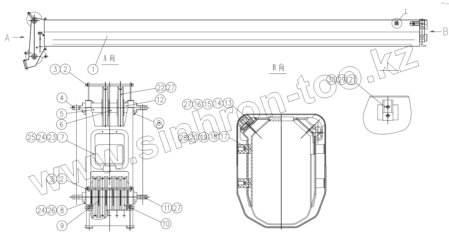 Каталог запасных частей к технике: XCMG QY30KL. 111500047 3rd Section Boom