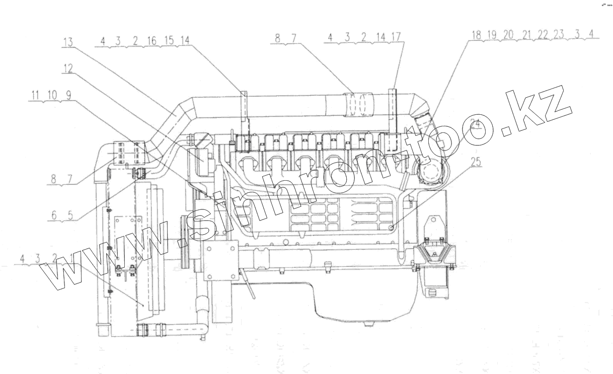 Каталог запасных частей к технике: XCMG QY70K (вариант). XZ50K.45 Engine Install (III)