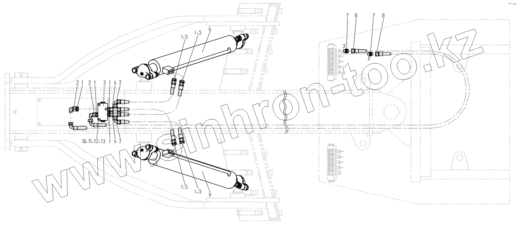 Каталог запасных частей к технике: XCMG Раб. оборуд. грейдеров GR. Front Harrow Hydraulic Ssytem GR135