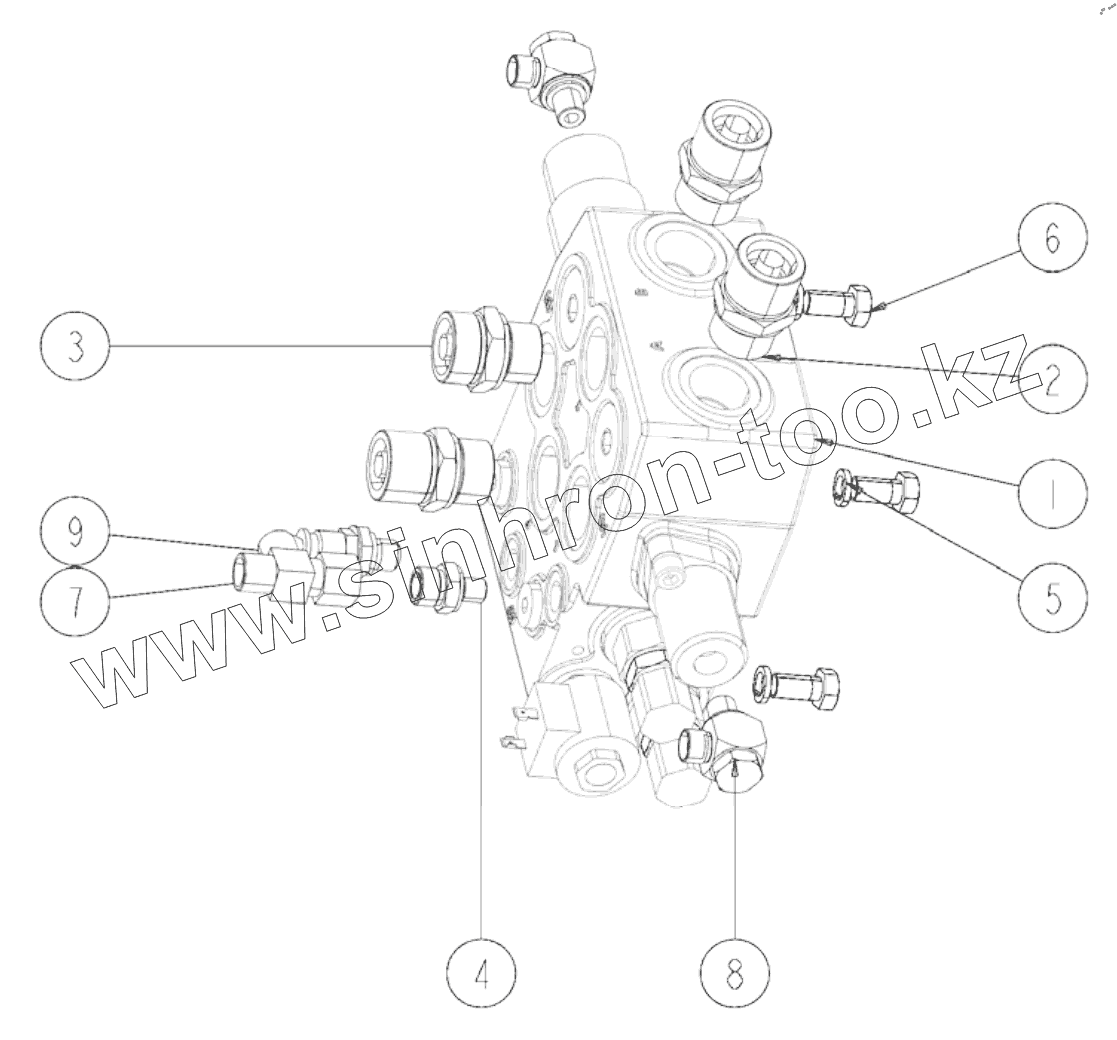 Каталог запасных частей к технике: XCMG XCT25L4_S. 110902502 Поворотный буферный клапан, установка