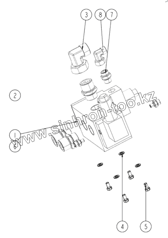 Каталог запасных частей к технике: XCMG XCT25L5_S. 110902468 Монтажный узел телескопического регулирующего клапана