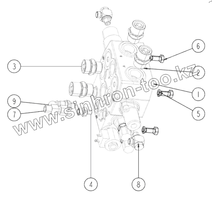 Каталог запасных частей к технике: XCMG XCT25L5_S. 110902502 Поворотный буферный клапан, установка