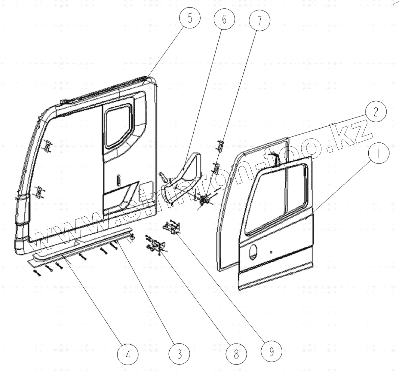 Каталог запасных частей к технике: XCMG XCT25L5_S. S0000031193 Раздвижная дверь в сборе