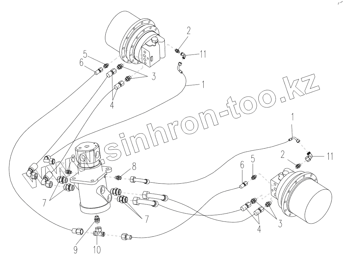 Каталог запасных частей к технике: XCMG XE150D. Base Hydraulic Piping