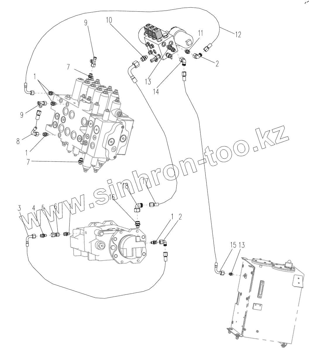 Каталог запасных частей к технике: XCMG XE150D. Pilot Hydraulic Piping