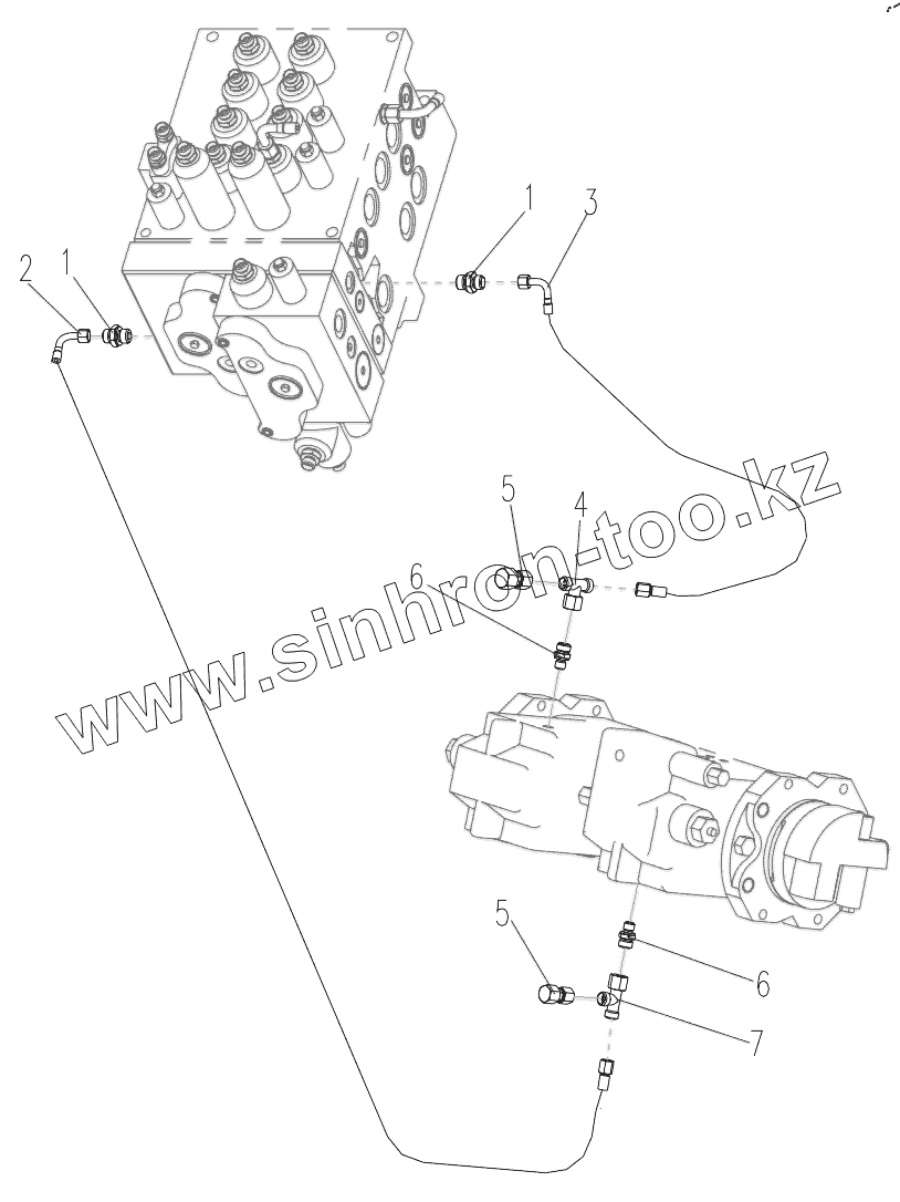 Каталог запасных частей к технике: XCMG XE150D. Pilot Hydraulic Piping