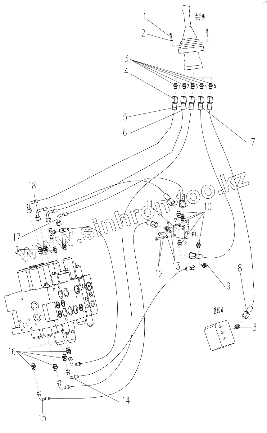 Каталог запасных частей к технике: XCMG XE150D. Pilot Hydraulic Piping