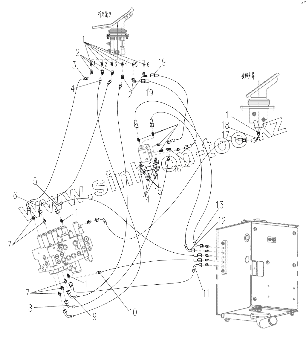 Каталог запасных частей к технике: XCMG XE150D. Pilot Hydraulic Piping