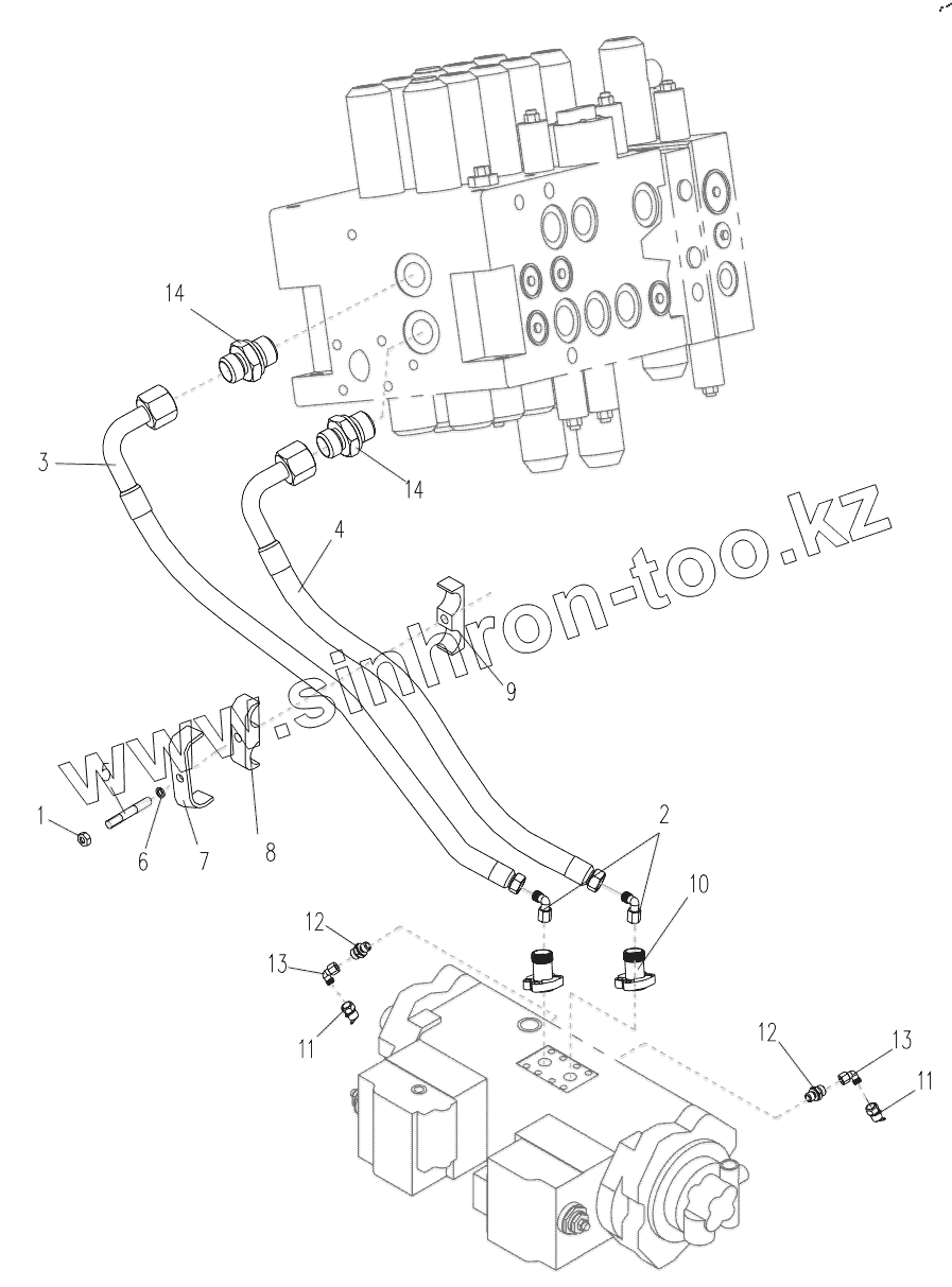 Каталог запасных частей к технике: XCMG XE150D. Upper Hydraulic Piping