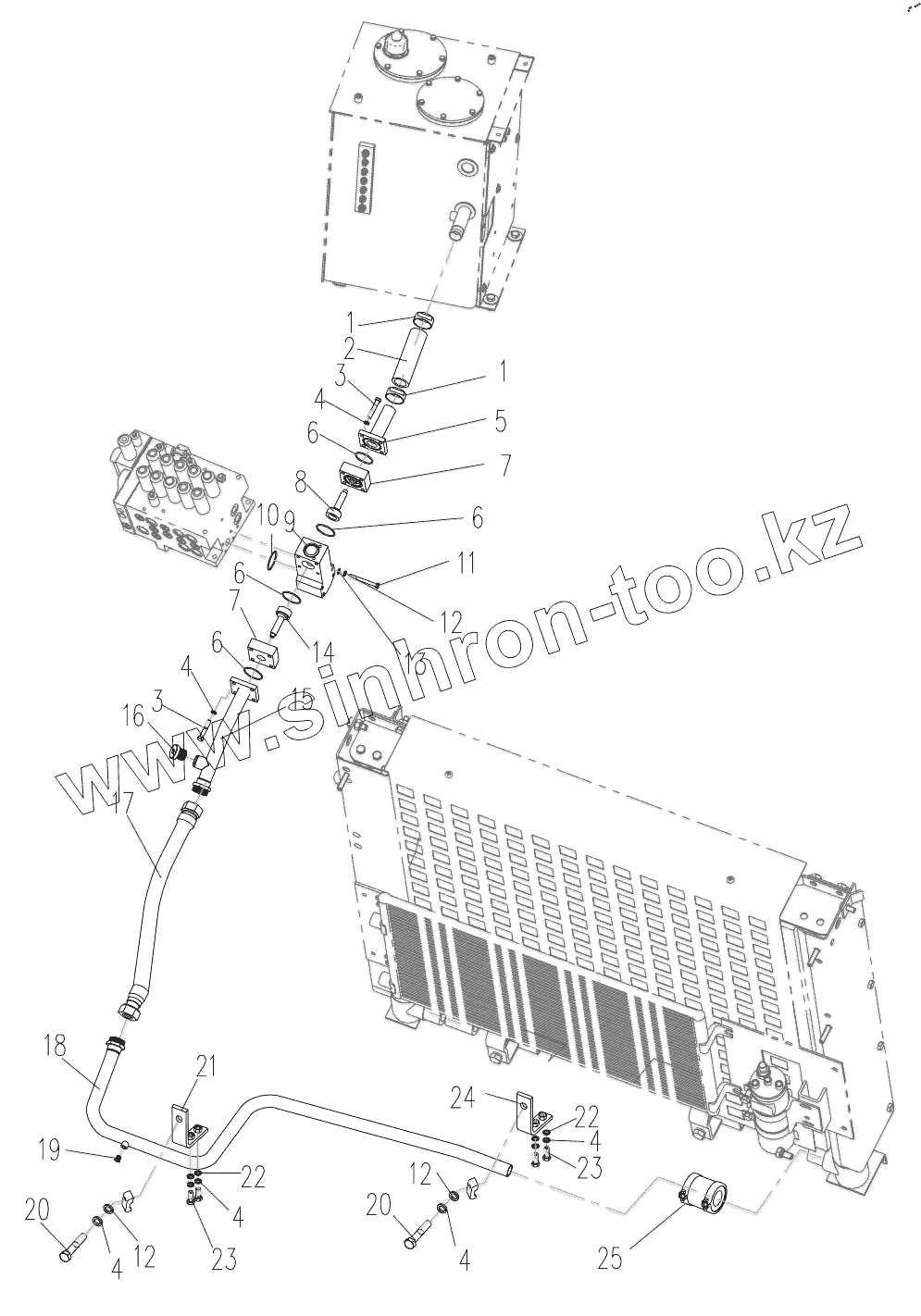Каталог запасных частей к технике: XCMG XE150D. Upper Hydraulic Piping