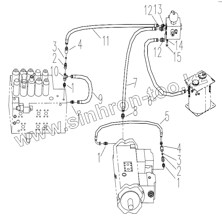 Каталог запасных частей к технике: XCMG XE230. Pilot Hydraulic Piping