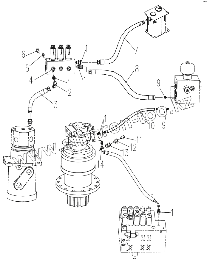 Каталог запасных частей к технике: XCMG XE230. Pilot Hydraulic Piping