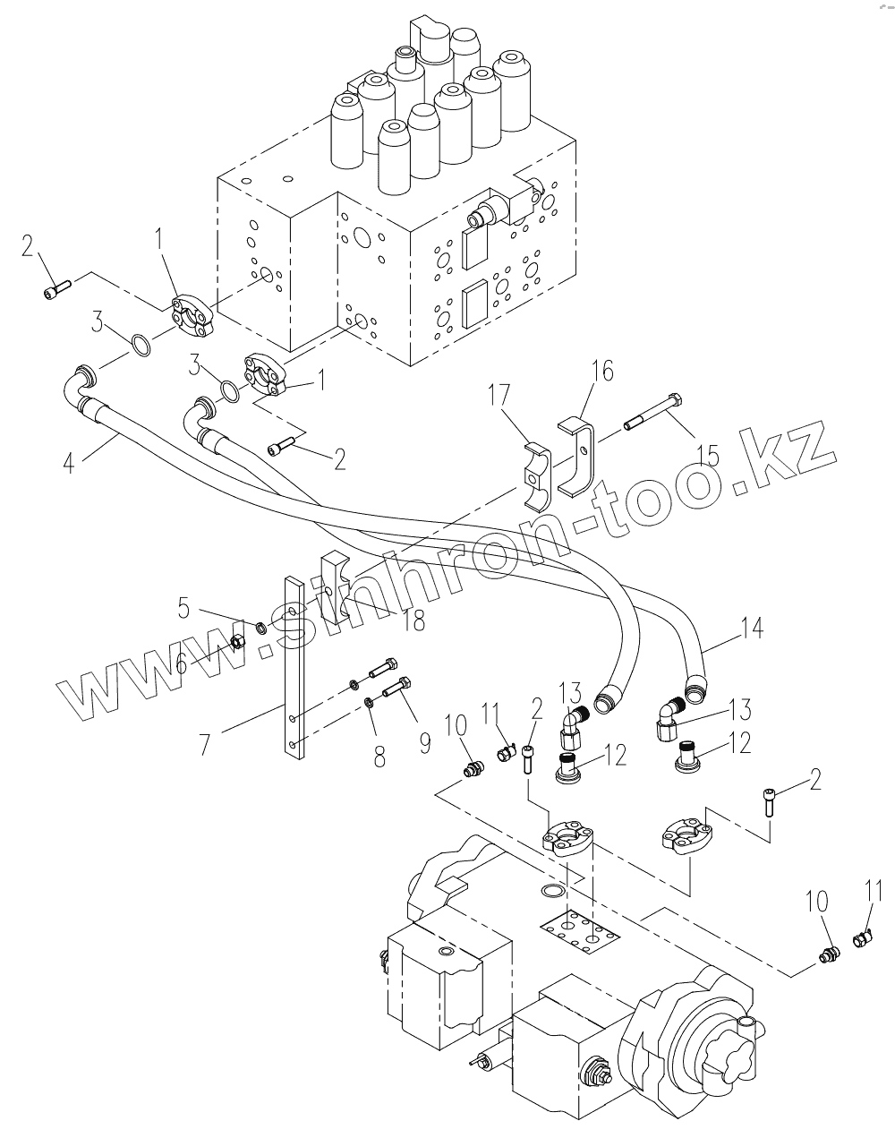 Каталог запасных частей к технике: XCMG XE230. Upper Hydraulic Piping