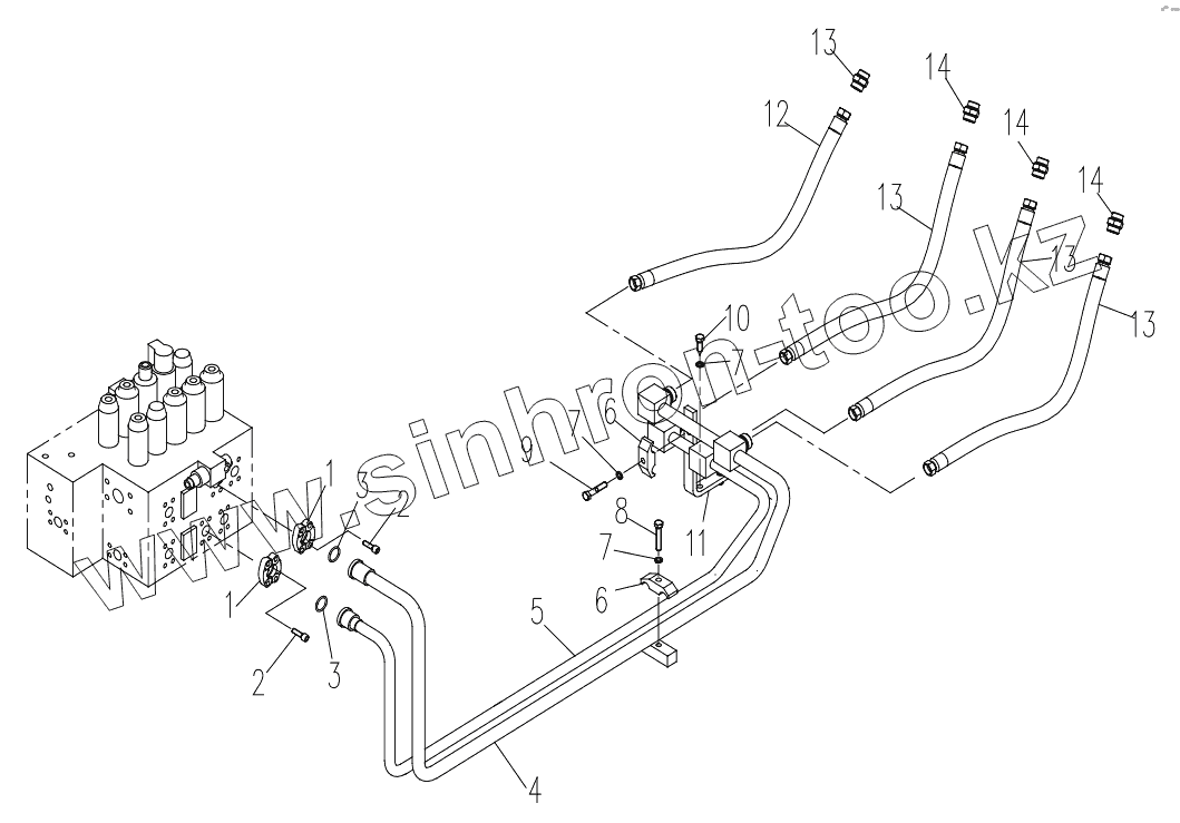 Каталог запасных частей к технике: XCMG XE230. Upper Hydraulic Piping