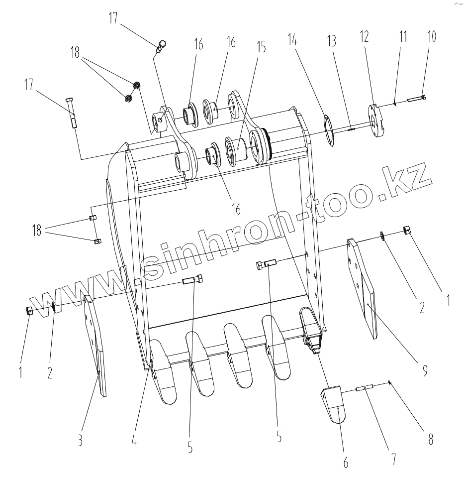Каталог запасных частей к технике: XCMG XE80. 310400070 Bucket (0.34m3, 750mm)