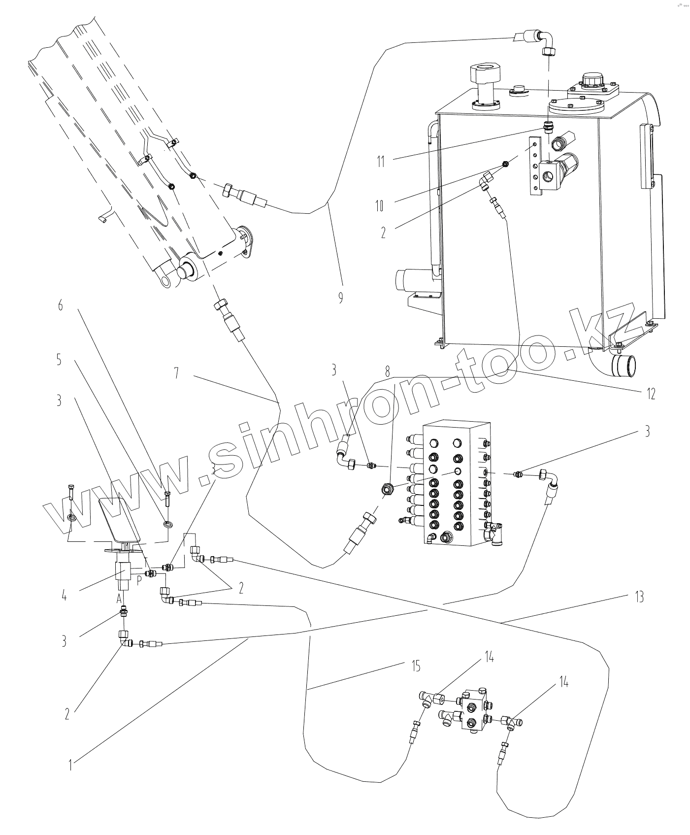 Каталог запасных частей к технике: XCMG XE80. 310401557 Breaker Piping