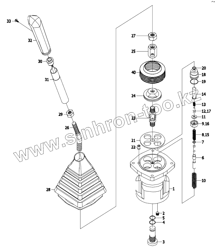 Каталог запасных частей к технике: XCMG XE80. 803007182 Right Pilot Valve
