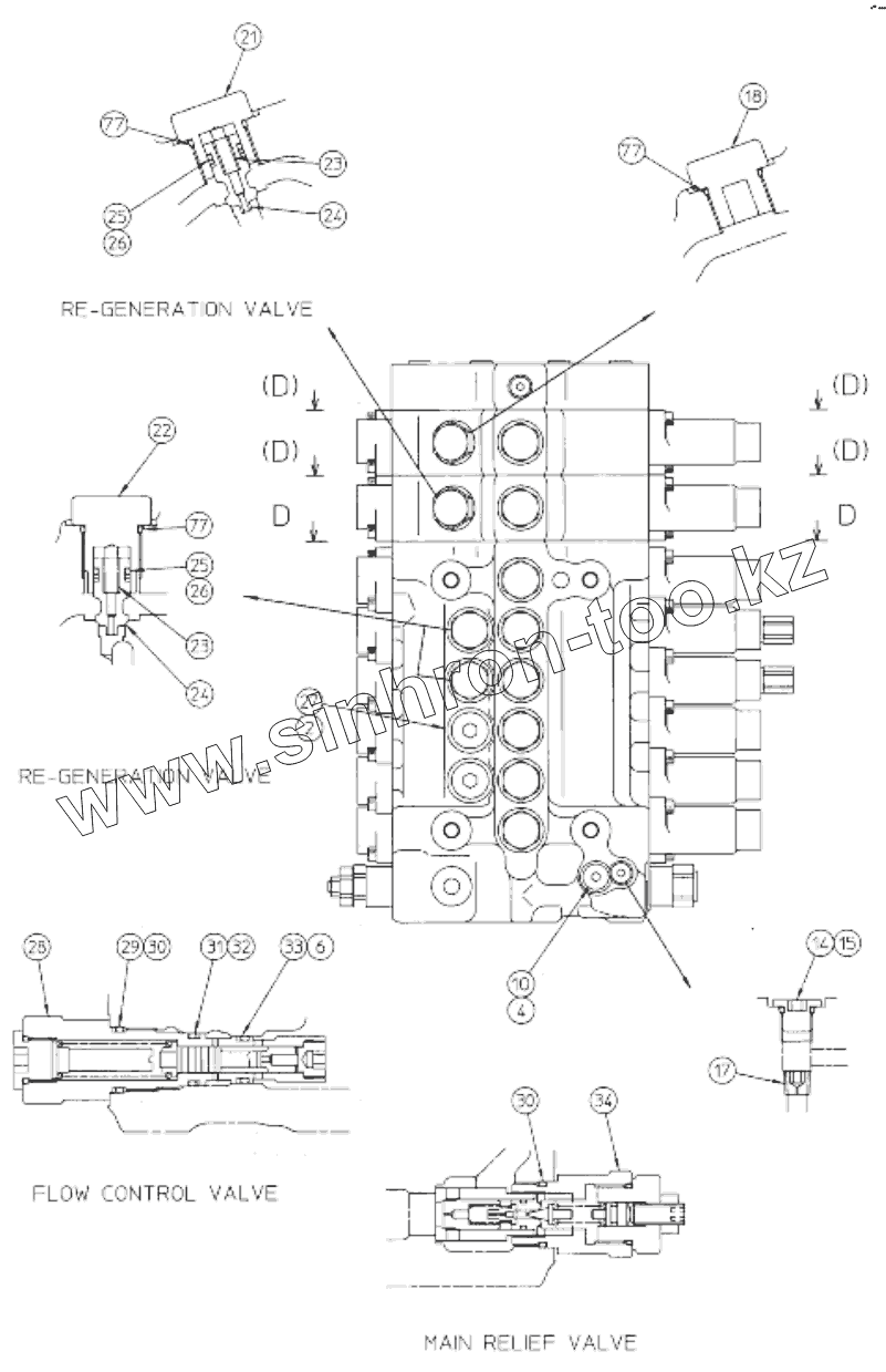 Каталог запасных частей к технике: XCMG XE80. 803007187 Main Valve