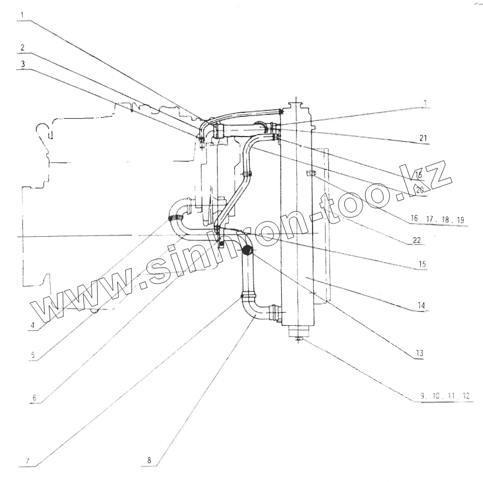 Каталог запасных частей к технике: XCMG XSM218, XSM220. Radiator and Water Pipe