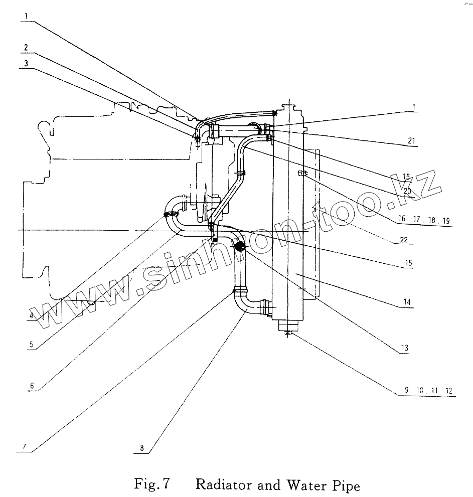Каталог запасных частей к технике: XCMG XSM218 (XSM220). Радиатор и водяные трубопроводы