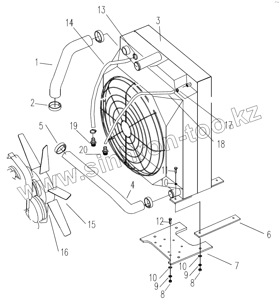 Каталог запасных частей к технике: XCMG XZ320. 0042407103 Radiator Assembly