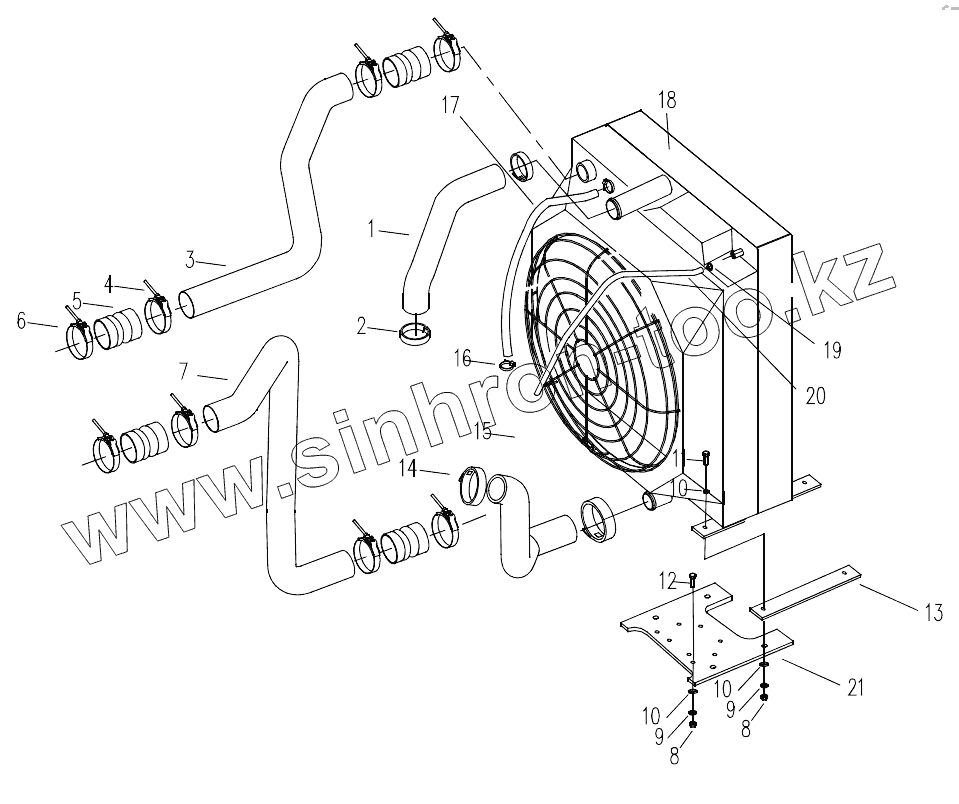 Каталог запасных частей к технике: XCMG XZ320. 0042407134 Radiator Assembly