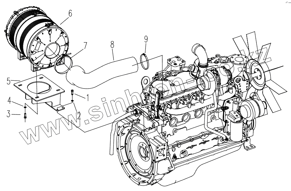 Каталог запасных частей к технике: XCMG XZ360E. 425402611 Intake System