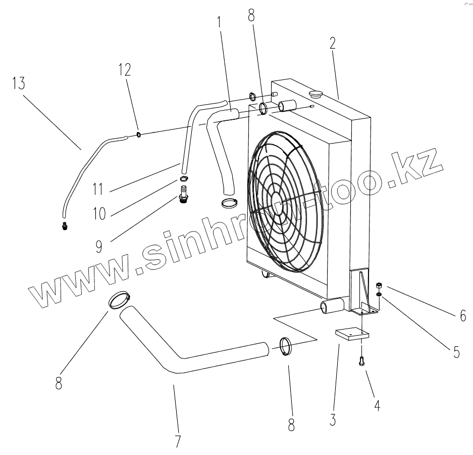 Каталог запасных частей к технике: XCMG XZ500. 0042107015 Radiator Assembly