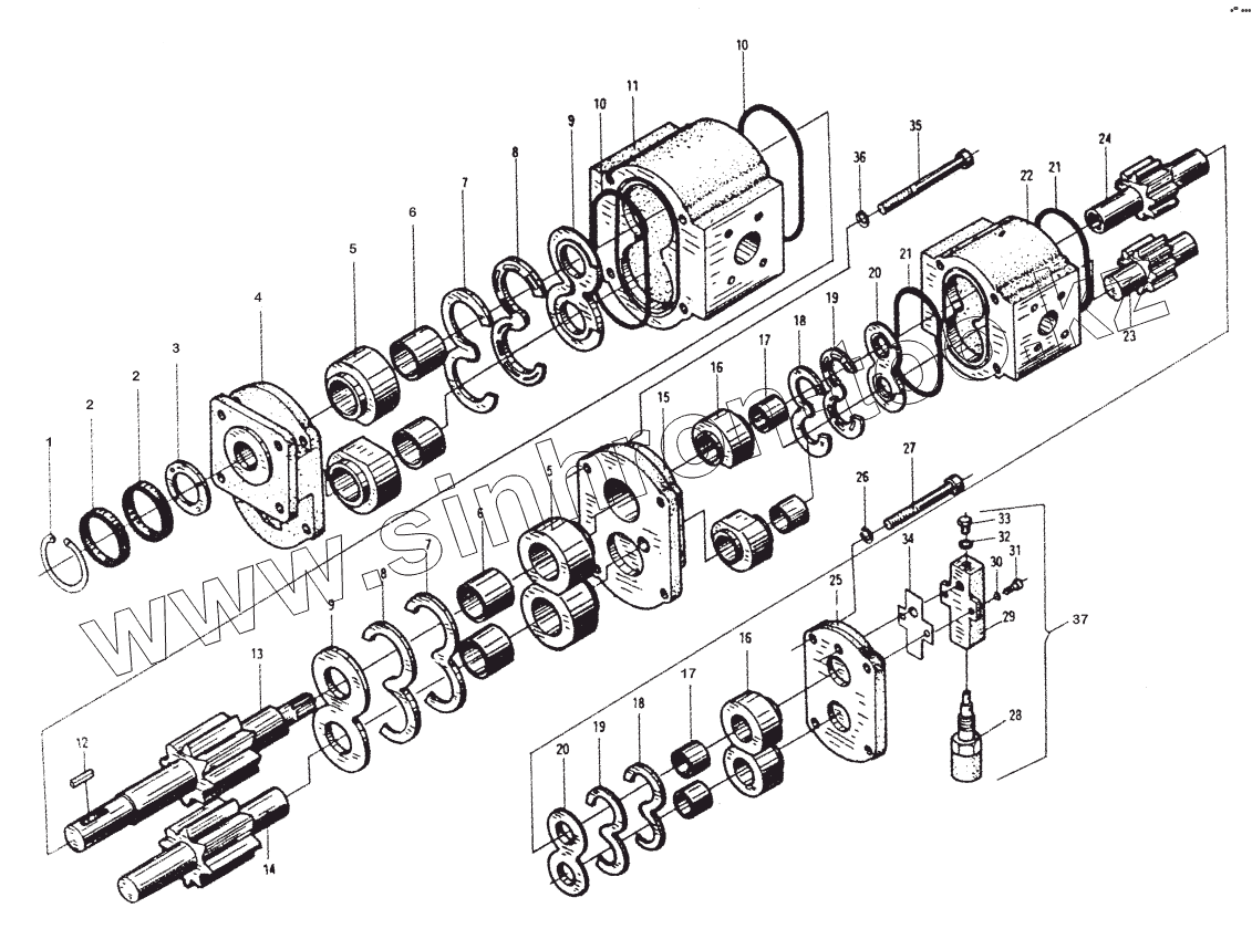 Каталог запасных частей к технике: XCMG ZL50G. Сдвоенный шестеренный насос