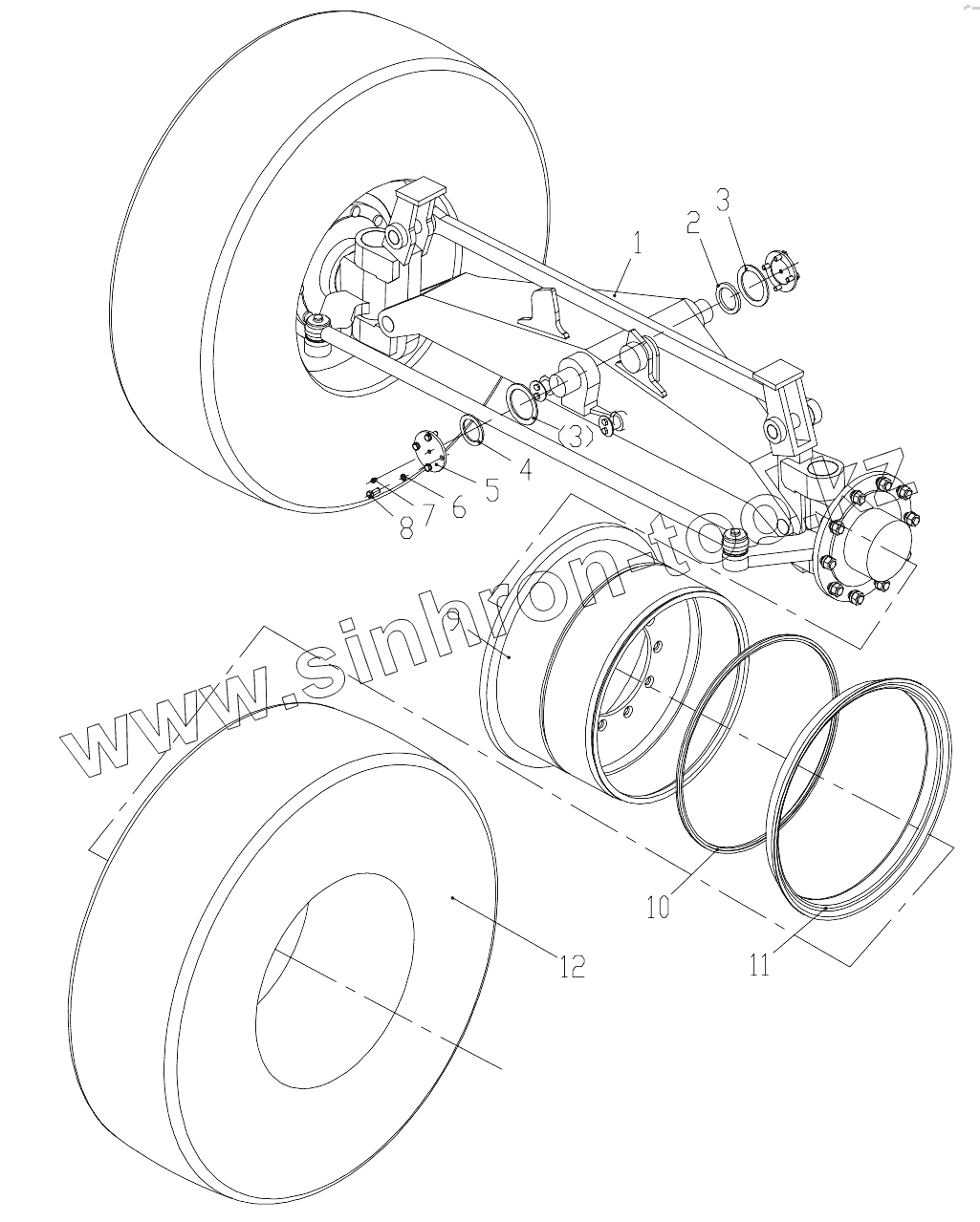 The following is a breakdown of the wearing parts of the CPQ180 front axle