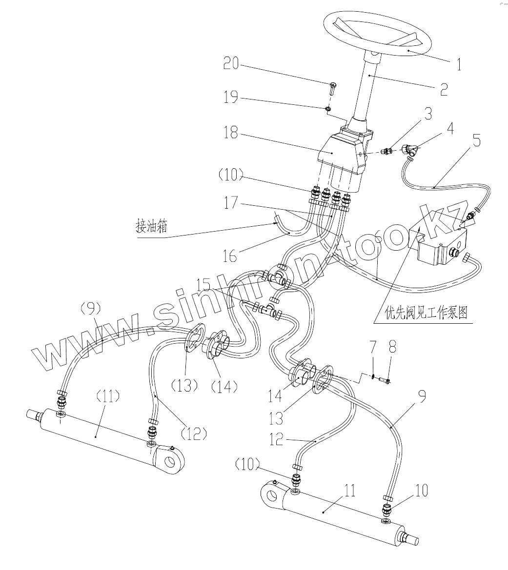 Каталог запасных частей к технике: XGMA XG31651. Hydraulic Steering System
